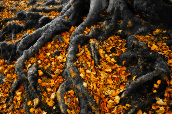 Here are four pictures I made recently and a couple from 2009 (the tree roots full of fallen leaves and reflections) when I did something similar.